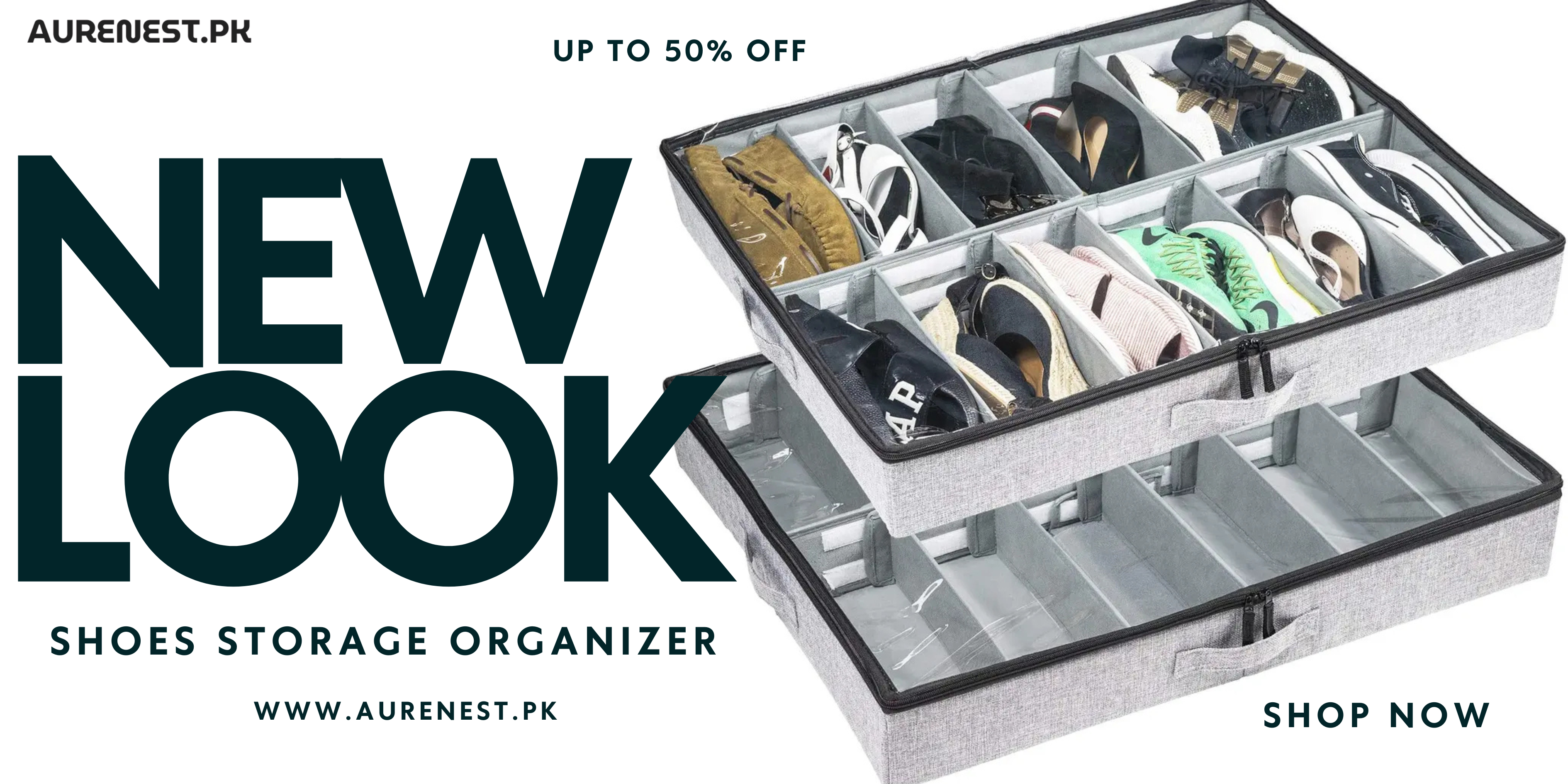 Under Bed Shoe Organizer Bag Hard Solid Fabric With Clear Plastic Zip Cover