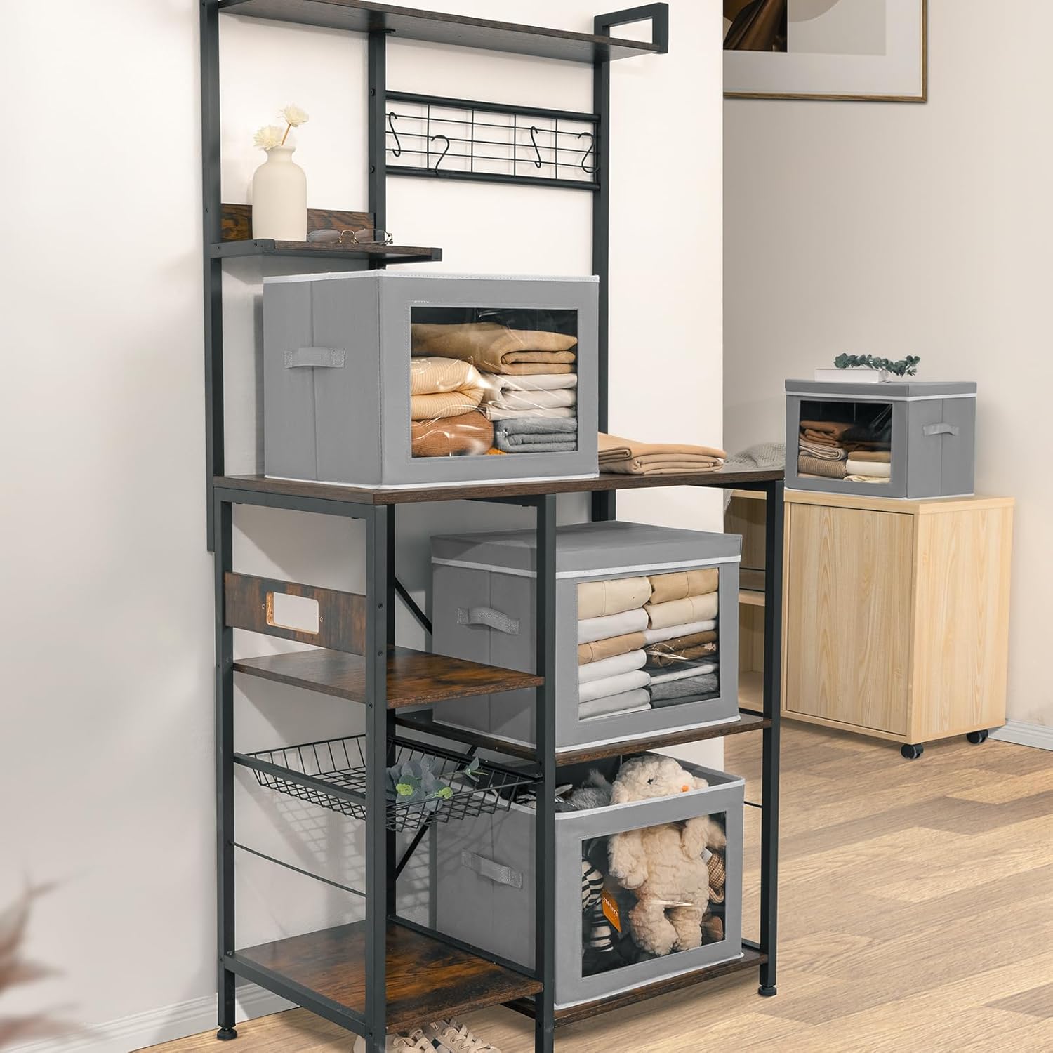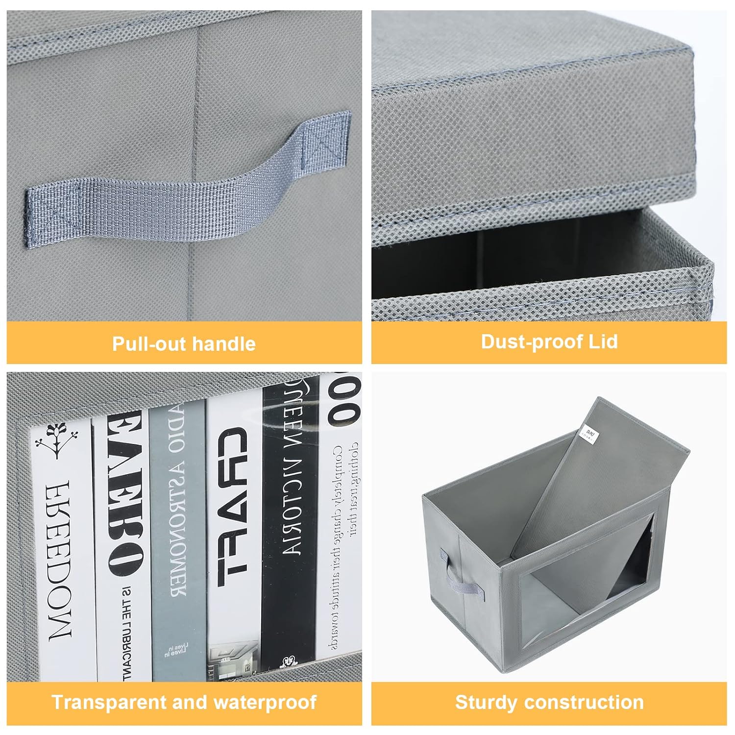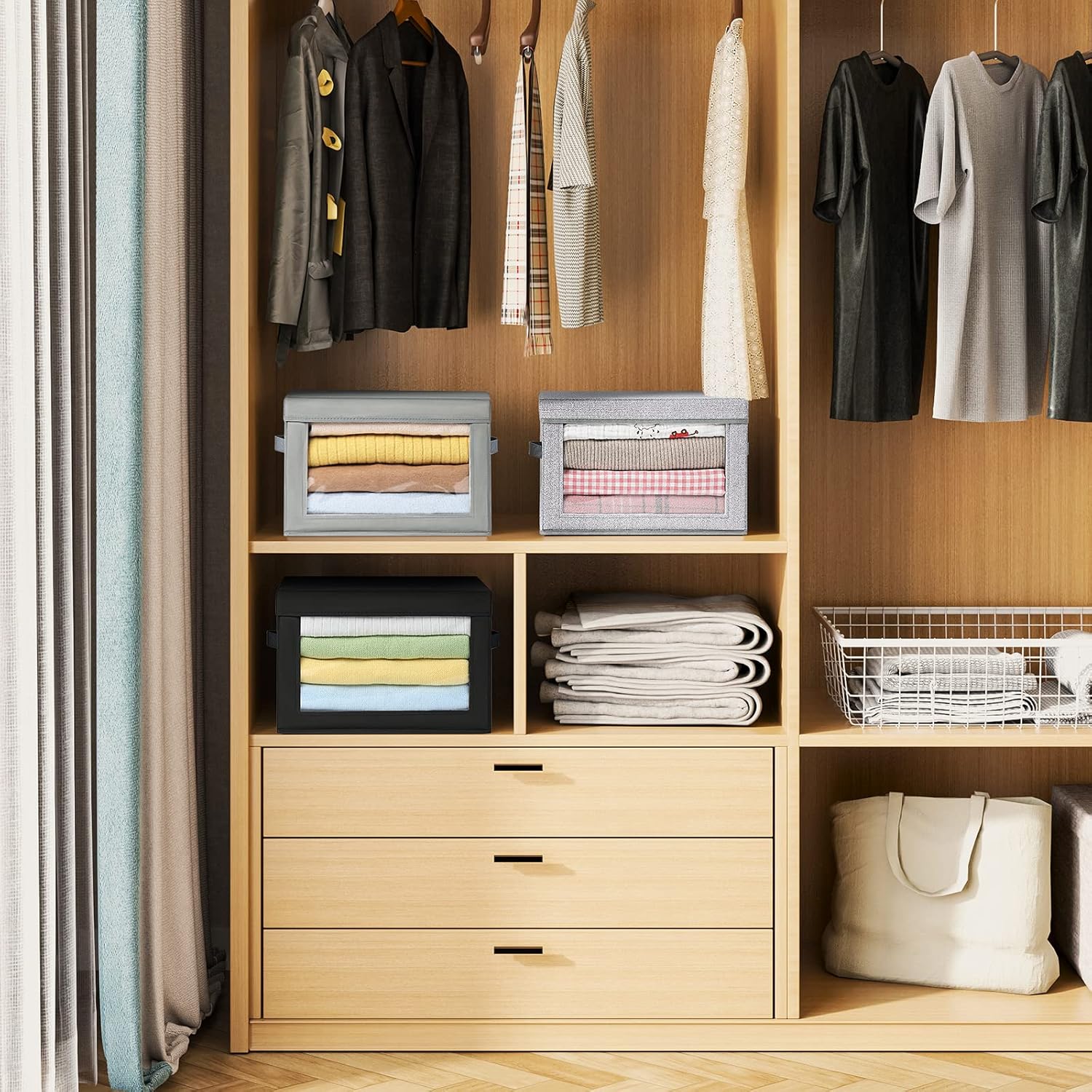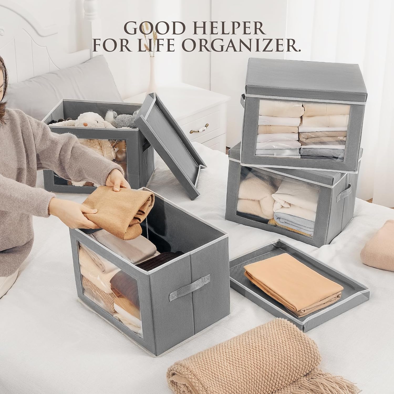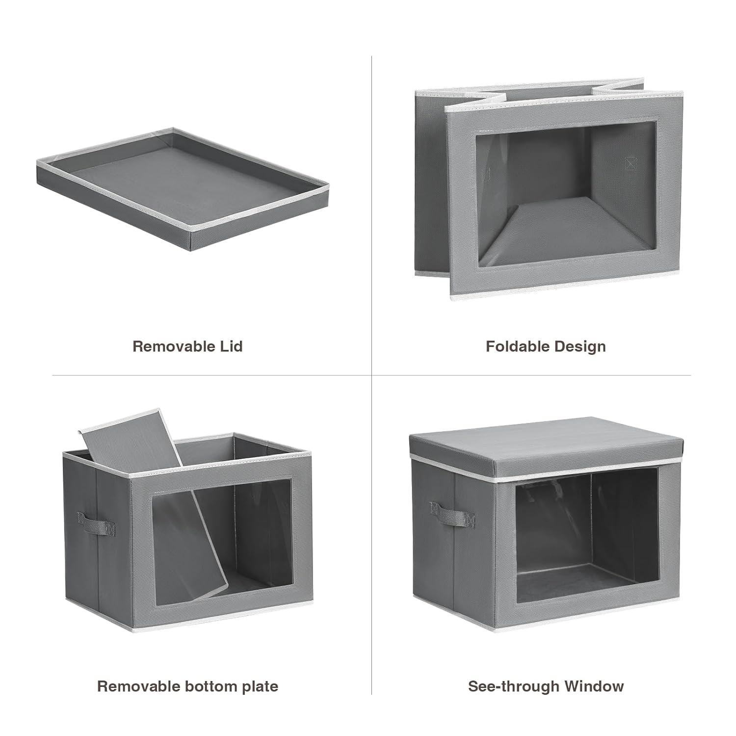 Large Storage Bins with Lids - Fabric Storage Cubes with Window, Foldable Storage Boxes for Clothes, Closet Organizers and Storage Bins for Bedroom, Dorm, Office, Light Grey